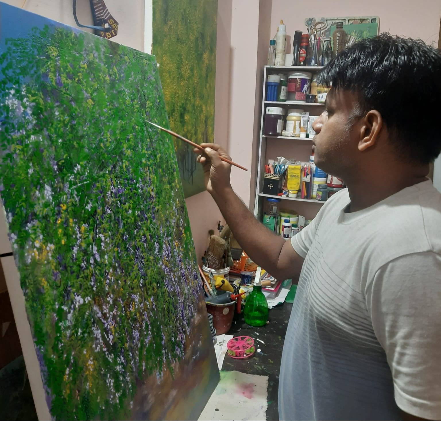 Palash Chandra Naskar is a contemporary Indian artist known for his captivating exploration of light and color, drawing inspiration from the natural world and everyday life. While his resume primarily focuses on his teaching career, his background reveals a deep immersion in the arts, suggesting an artistic journey influenced by Impressionism, evident in his focus on capturing fleeting moments and atmospheric effects. His artistic style likely emphasizes vibrant hues and expressive brushwork, reflecting the emotional essence of his subjects.