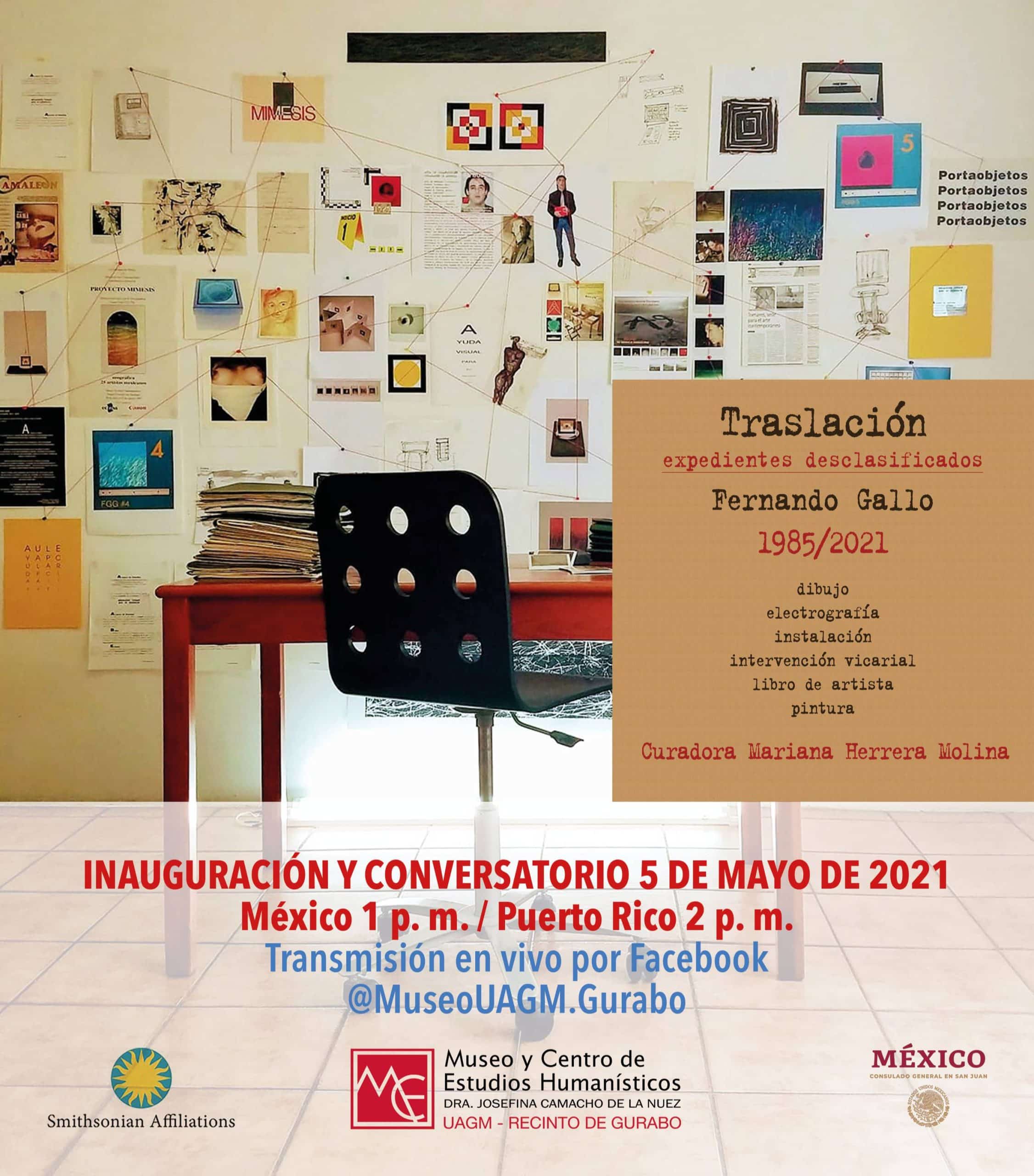 * Traslación. Expedientes desclasificados 1985/2021, Museo y Centro de Estudios Humanísticos Dra. Josefina Camacho de la Nuez, Recinto Gurabo de la Universidad Ana G. Méndez, Pueto Rico, 2021